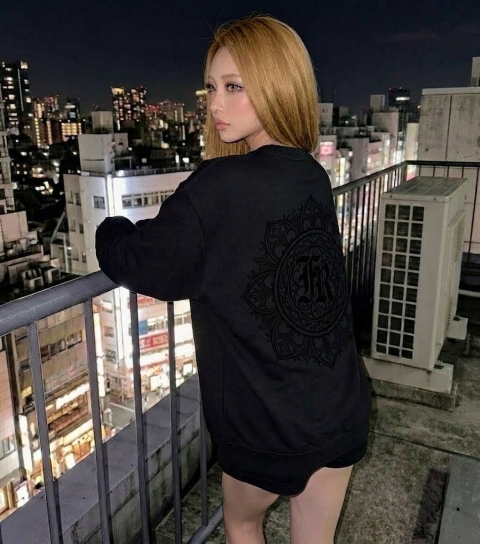 バック: 中央に「FR」のイニシャルを冠した緻密なマンダラグラフィックを大胆にプリント。